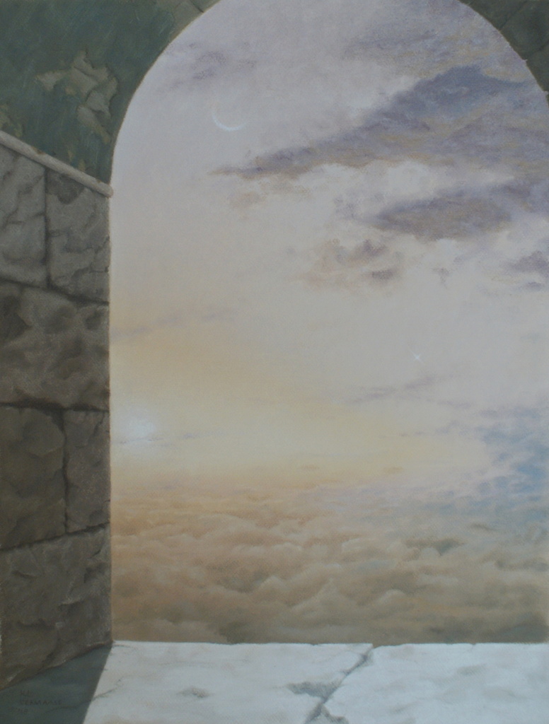 Landschap Wolken Zonsondergang Tekening Vergezicht Pastel Surrealisme Architectuur Ruïne Symbolisme Tombe