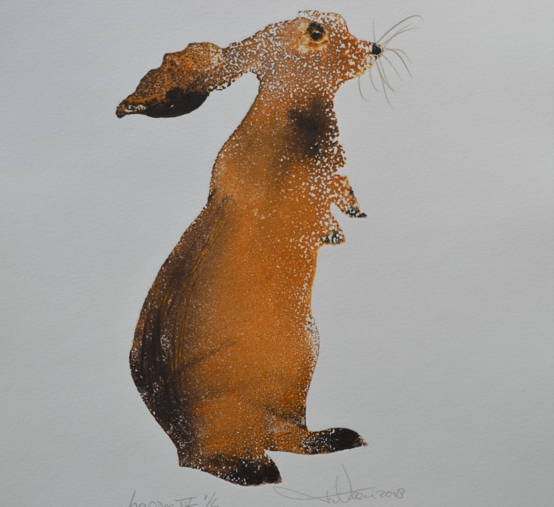 Konijn IV - Lapin IV - droge naald en aquatint - uitgezaagde zinkplaat - meerkeluren druk - oplage 1/10