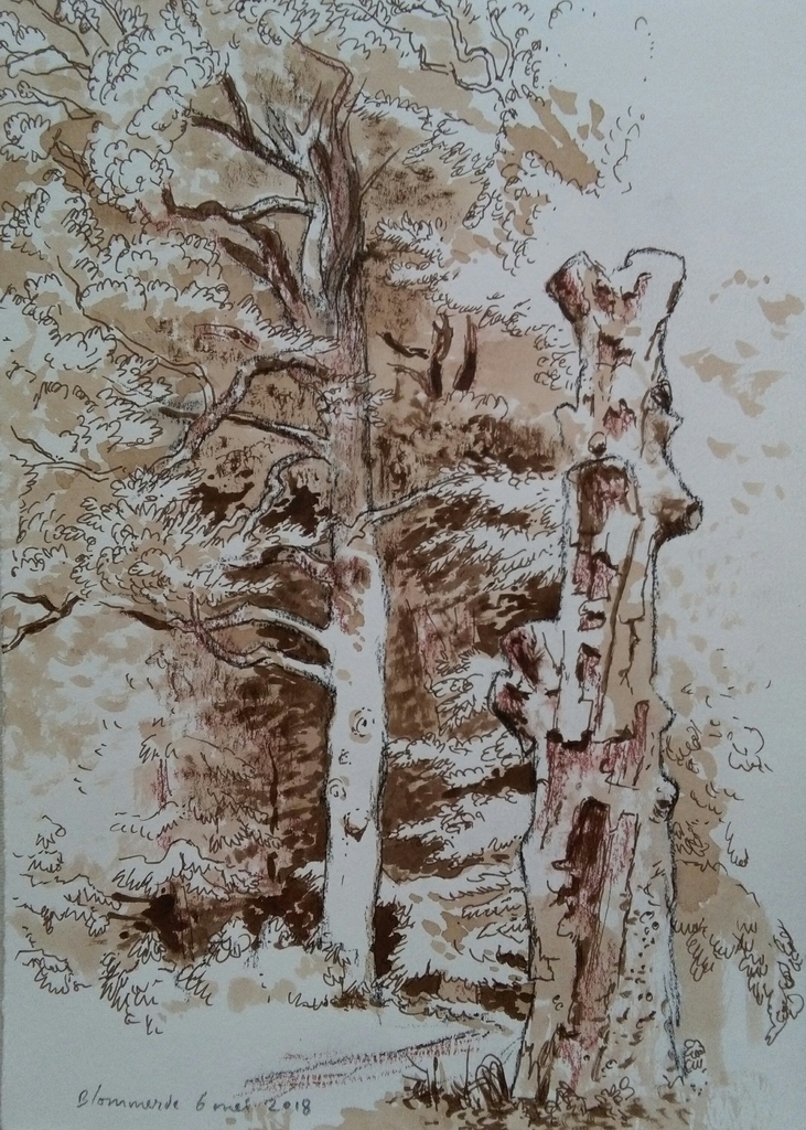 Boom Natuur Landschap Bos Figuratief Realistisch Pen Tekening Inkt