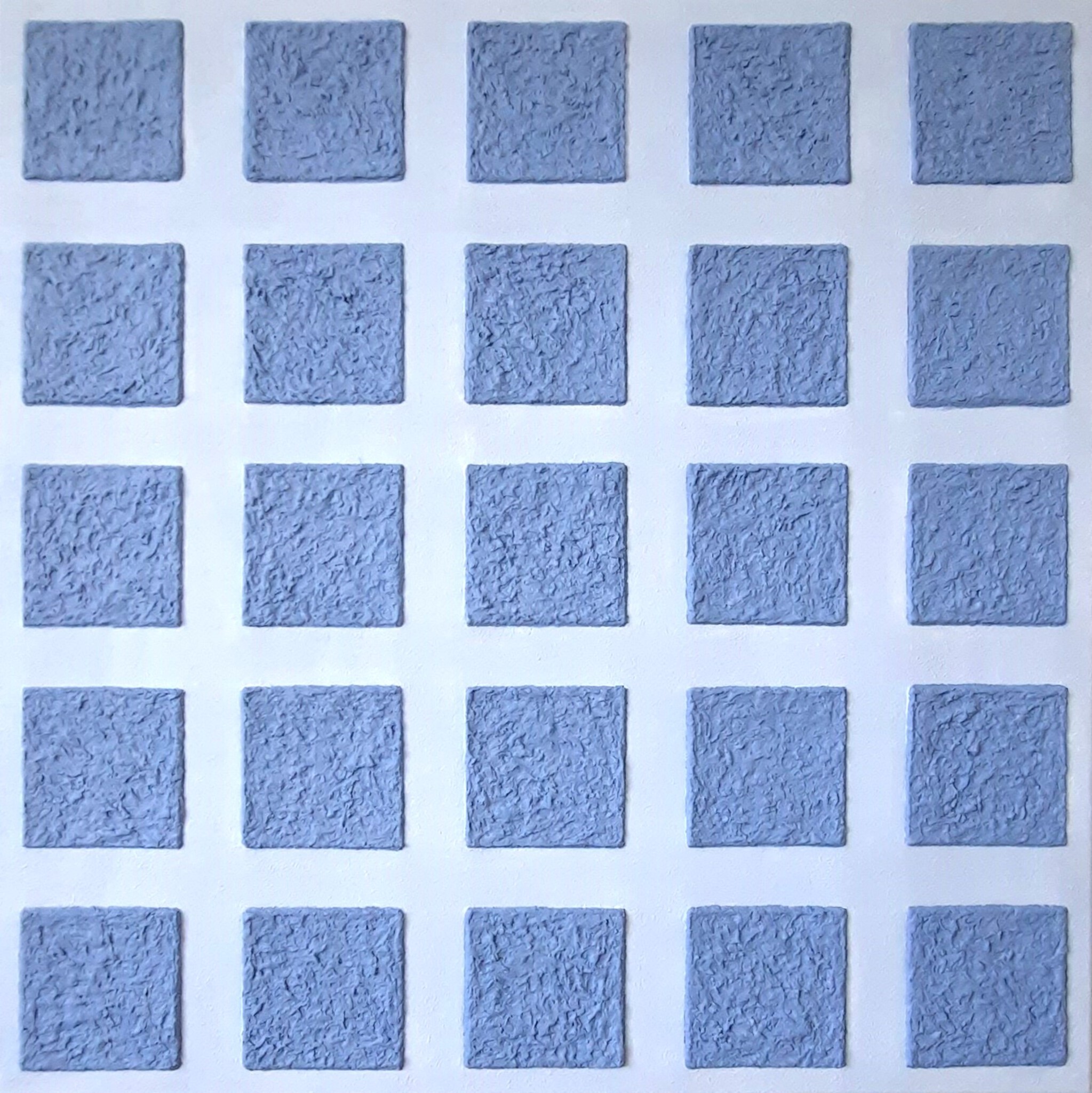 Schilderij Modern Blauw Canvas Vierkant Strak Eenvoud Structuur Minimalistisch Linnen Minimalisme Sober Hedendaags Wandobject Harmonie Raster Kantoor Den Haag 100x100cm Woonkamer Slaapkamer Wanddecoratie Modernisme 1250euro