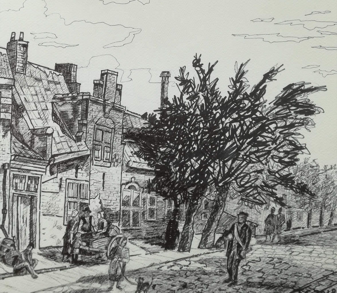 Wit Zwart Landschap Romantiek Potlood Architectuur Steegje Stadsgezicht Stift Eeuw Historie Straatbeeld Haarlem 19e Arbeiders