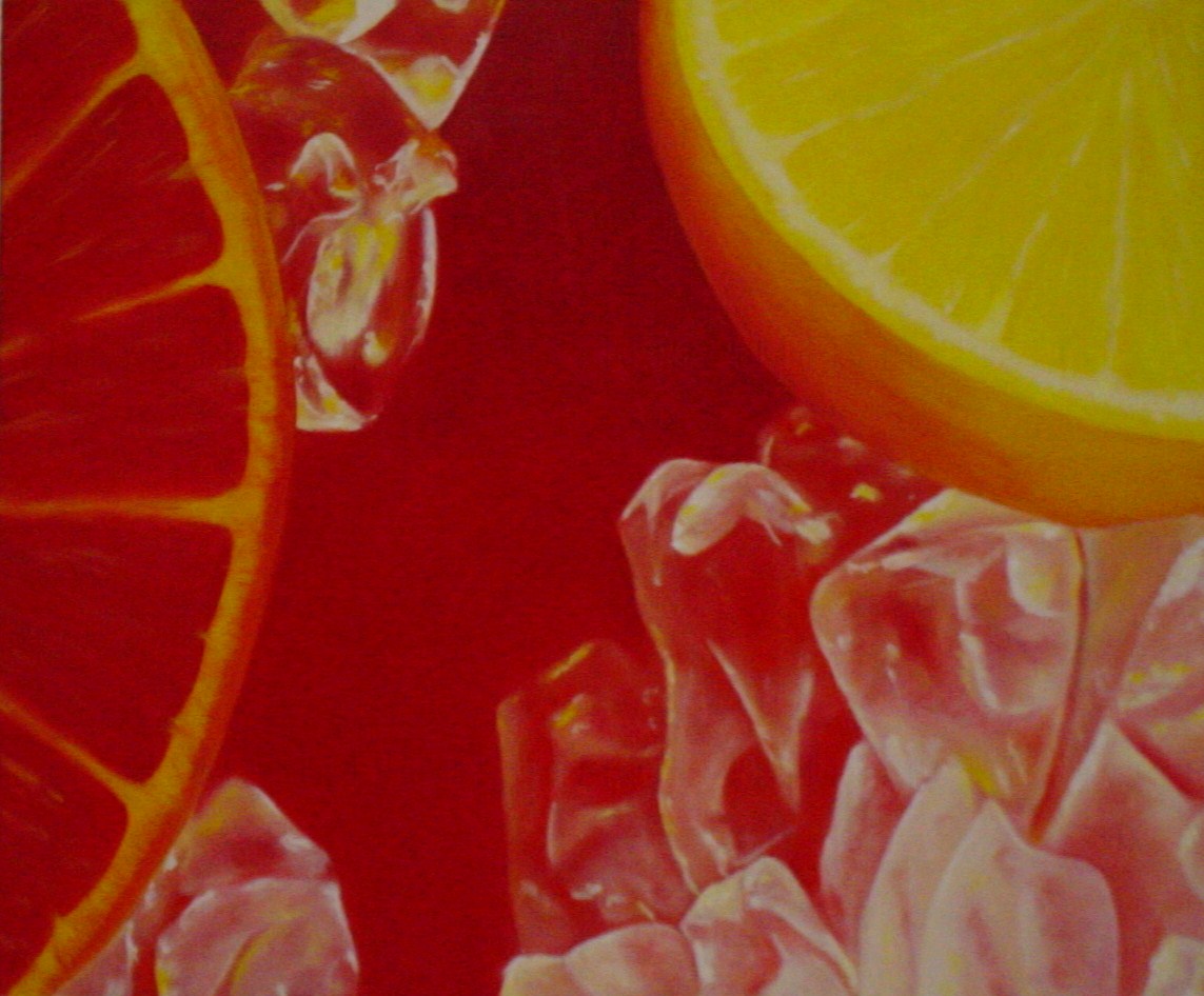 nog niet geheel gereed, compositie van grapefruit en ijs