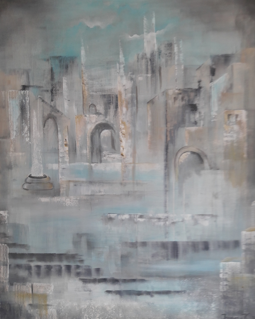 Mixed Media Acryl Stadsgezicht