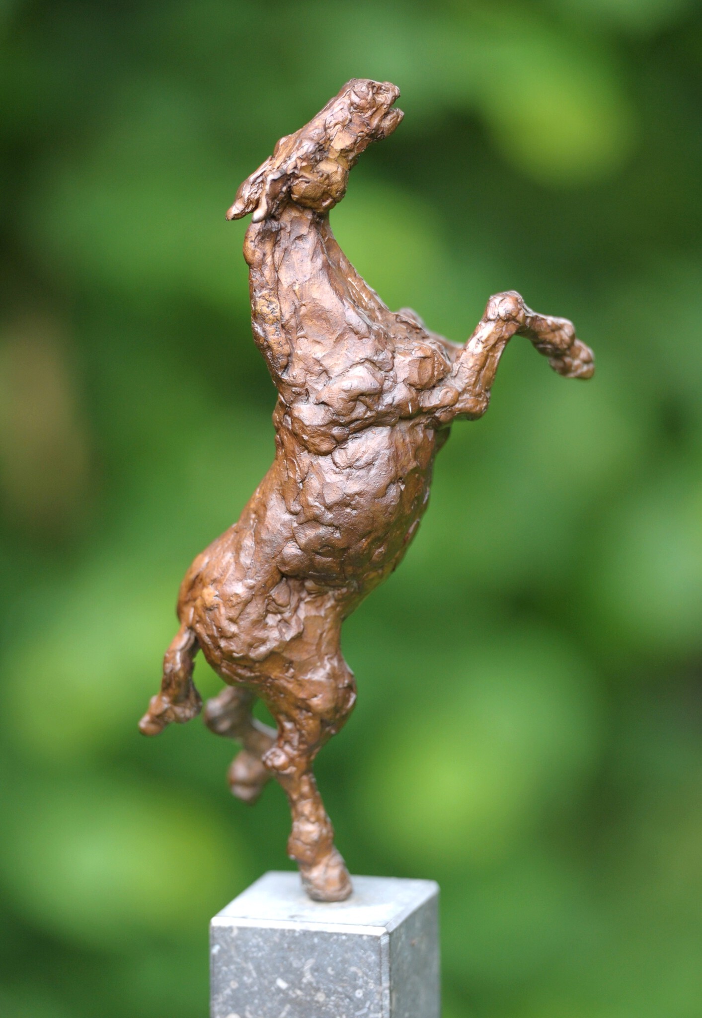 'Steigerende', een uitdagende houding om uit te beelden.Hoe een klein beeld toch 'groots' kan zijn in een border, zie de foto van 'Steigerende' onder de knop info Beeldentuin.......Helaas niet meer beschikbaar.