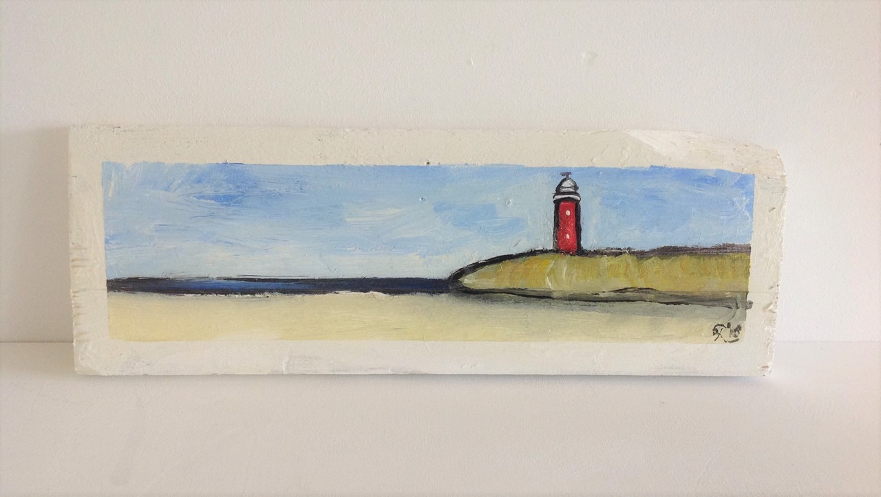 Texelse schildering op hout 15 x 30 x 2 cm. VERKOCHT.