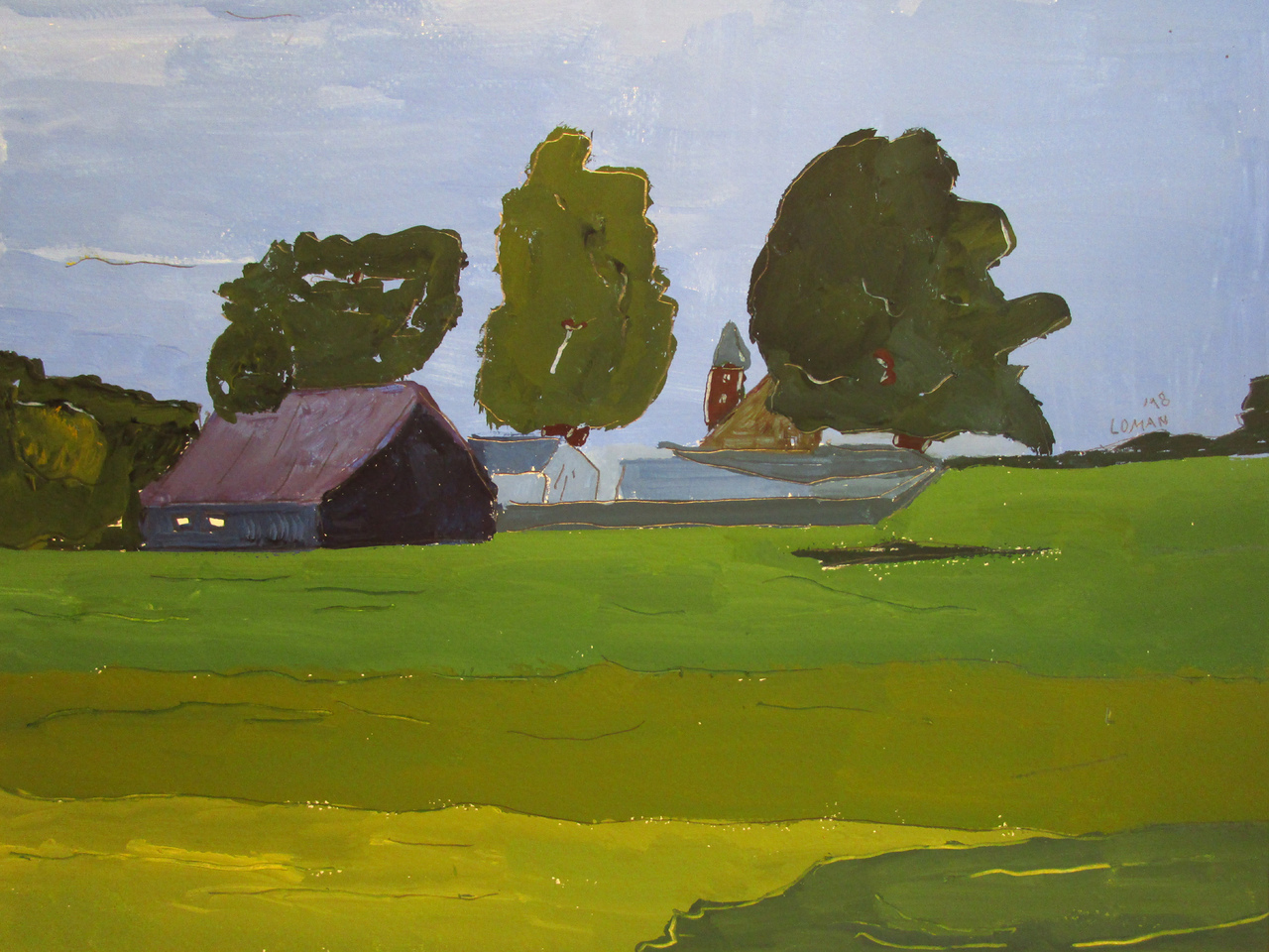 Karel Loman schildert expressief. Zijn landschappen en stads- en dorpsgezichten zet hij in heldere kleuren op papier. De sfeer van het landschap staat bij hem voorop. Loman werkt voornamelijk met temperaverf, aangevuld met inkt of potlood.