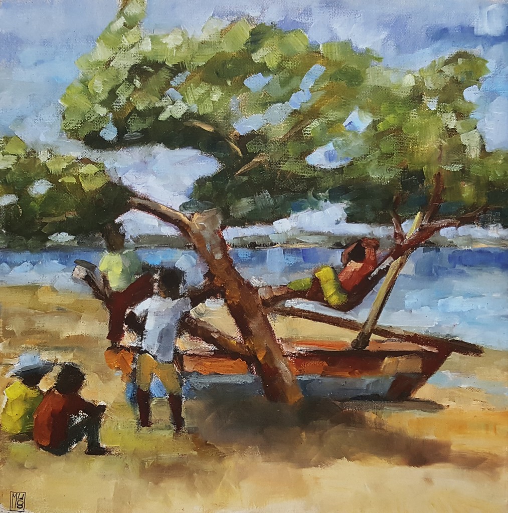 De hangboom bij laag water aan Shela Beach