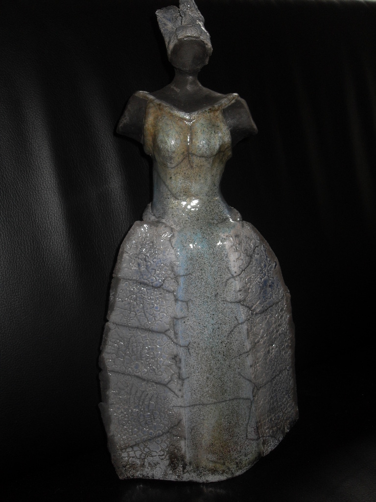 Lady in blue, raku gestookt.