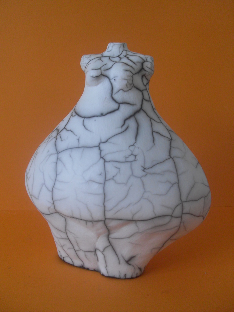 Vrouwentorso. Naked-raku gestookt.