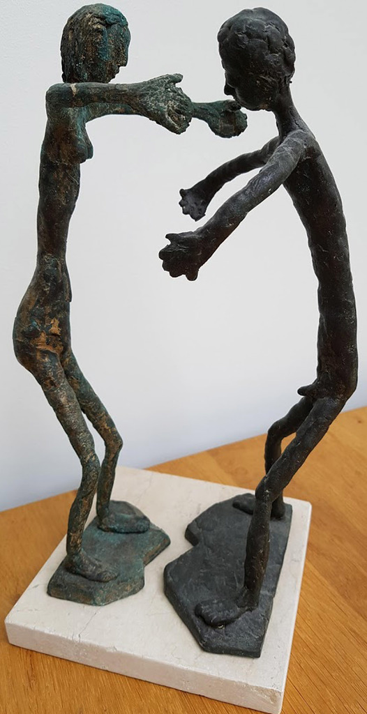Het eerste beeld uit de drie-delige serie verlangens. Gepatineerd brons.