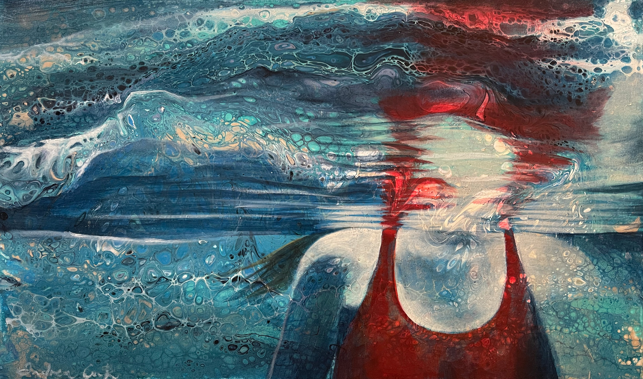 Rood Blauw Blue Red Onderwater Zwemmer Reflection Bubbles Zwemster Swimmer Underwater
