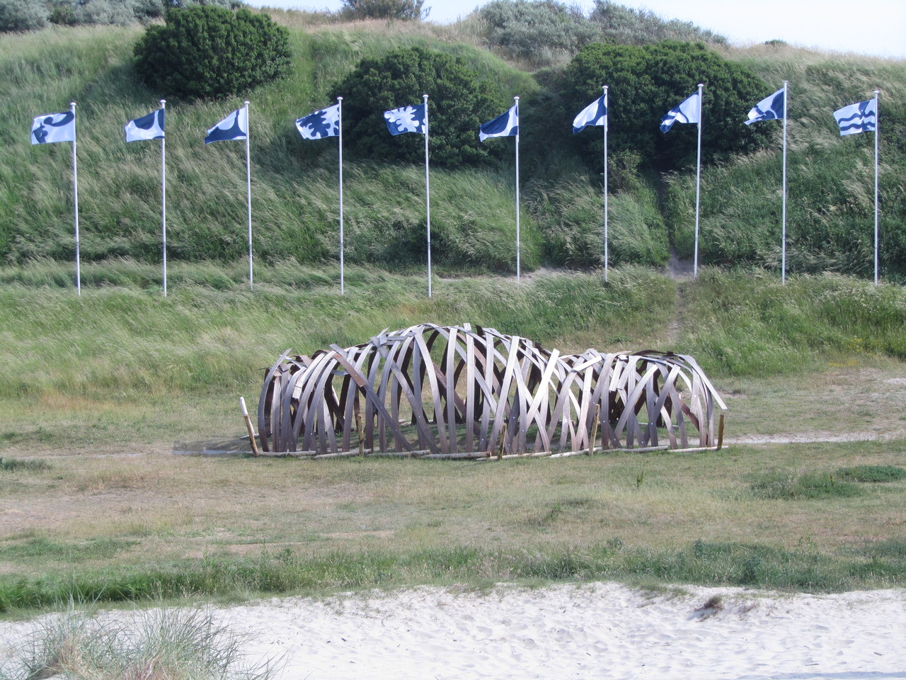 12 vlaggenmasten - 12 cut-out vlaggen - 12 signaties ivm met windkracht Beaufort - 12 minimale schilderijtjes . Dit in samenwerkingsverband met Artslag-kunstvereniging . Diverse andere monumentale werken zijn op de site gemonteerd .waaronder een bruinvis , een poëzielarve en gedecoreerde windzakken.. Aanvulling in 2019 ' Telemachos' door D&D projects.