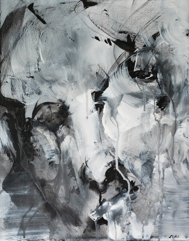 Inkt en acryl op doek.