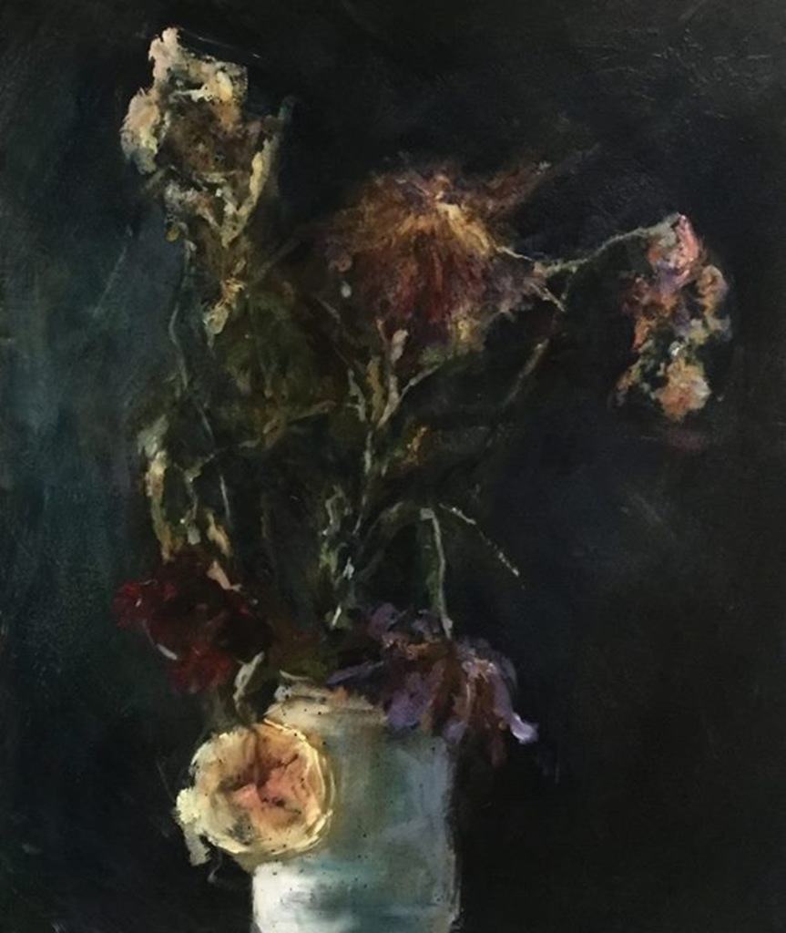 Groot, figuratief werk waarin mensen (en soms dieren) centraal staan. Door uitsnede, materiaalgebruik en een sober palet ontstaan confronterende beelden die uitnodigen tot reflectie.