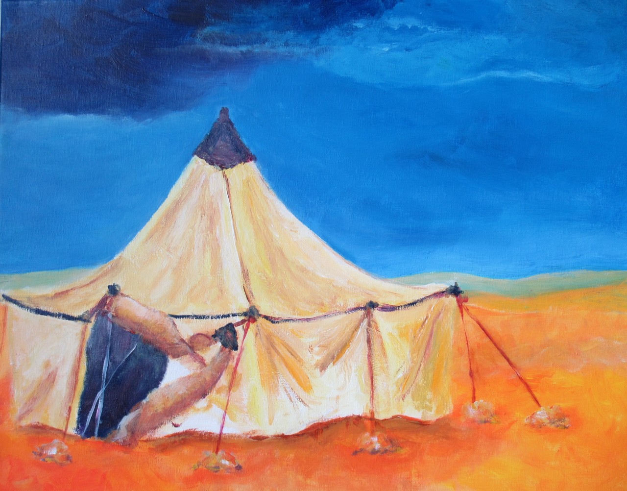 Nomadentent in de Marokkaanse woestijn, voor de zandstorm.