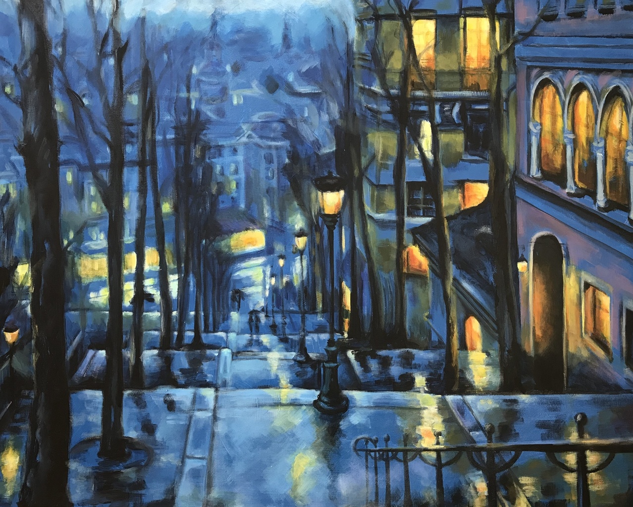 Geel Blauw Yellow Blue Licht Light Regen Parijs Trappen Paris Stairs Rain Lichtstad Montmarte