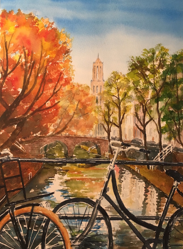 Water Van Aquarel Oude Gracht Der Schilderen Utrecht Cursus Workshop Reflections Burgh 2018 2019
