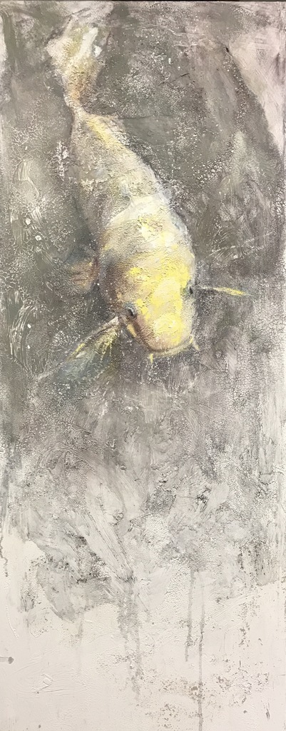 Groot, figuratief werk waarin mensen (en soms dieren) centraal staan. Door uitsnede, materiaalgebruik en een sober palet ontstaan confronterende beelden die uitnodigen tot reflectie.