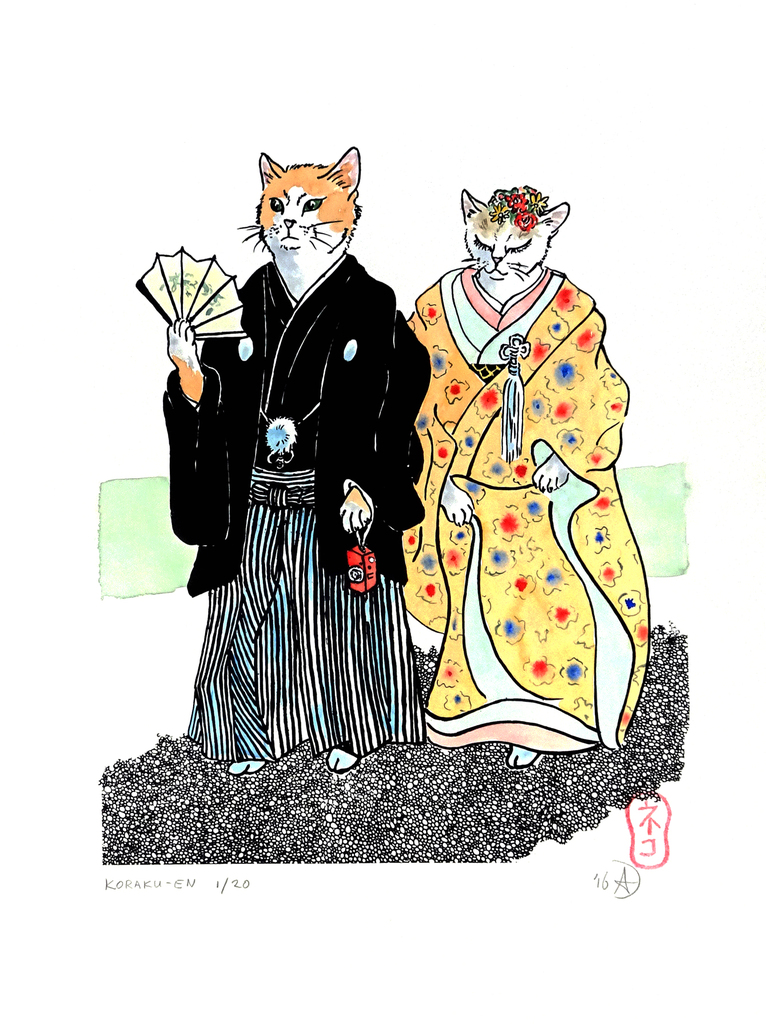 Zeefdruk Silkscreen Kat Cat Bruid Bride Japan