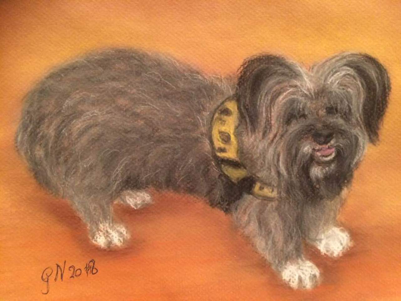 Hond Charly in pastel op papier 22 x 30 cm