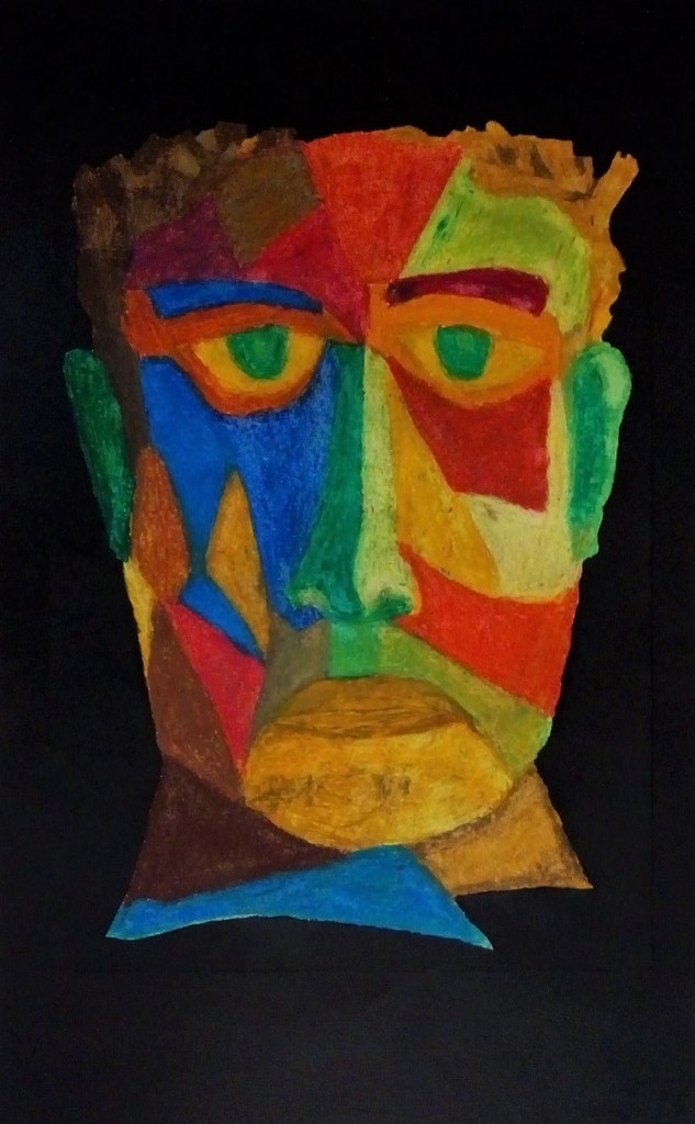 Een andere manier van naar jezelf kijken. Met een krijtje op zwarte achtergrond je eigen lijnen en uitdrukking volgen. Je ziet de buitenkant, maar als je heel goed kijkt zie je ook een beetje van mezelf.