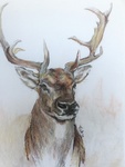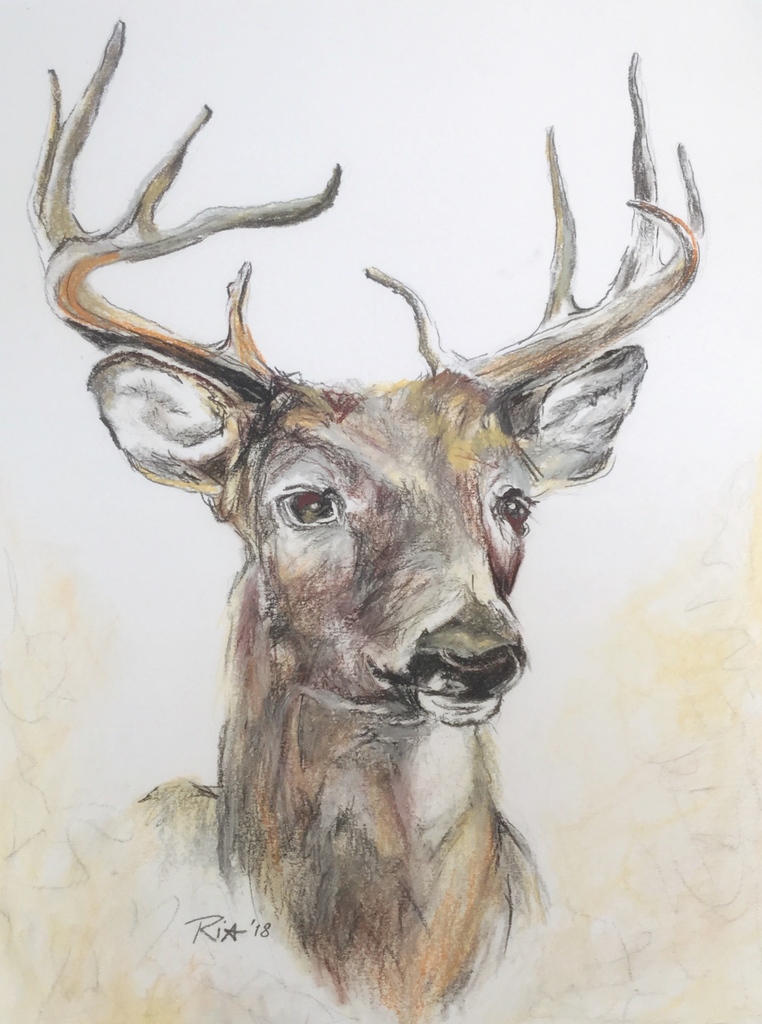 Geel Zwart Bruin Krijt Potlood Dier Tekening Pastel Hert
