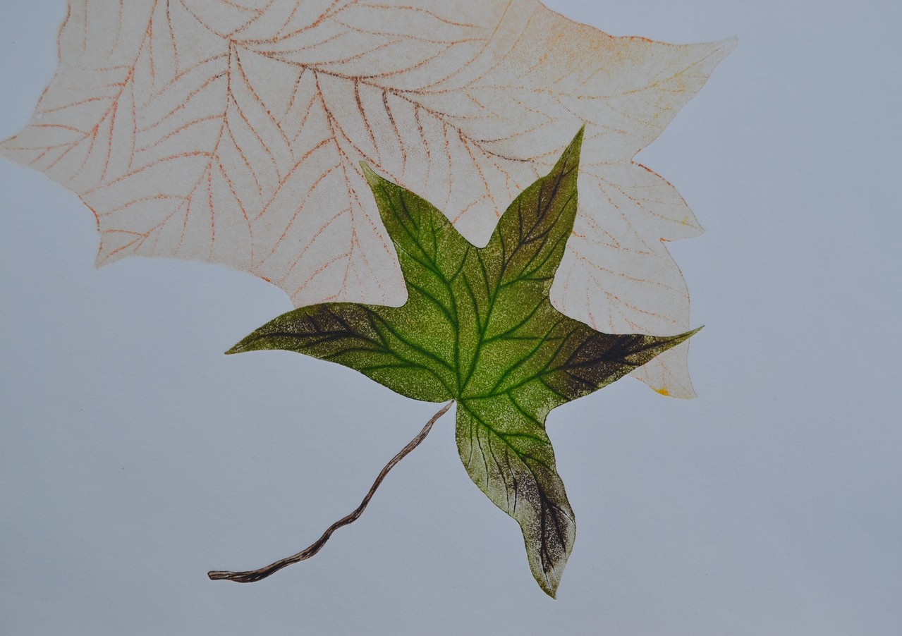 Feuilles XV - droge naald en aquatint - uitgezaagde zinkplaatjes - meerkleuren druk - oplage 1/1