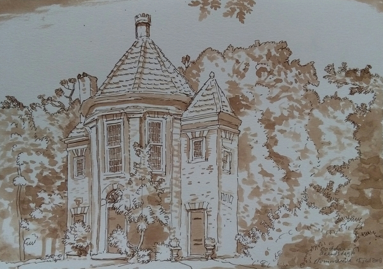 Pentekening van het voormalig theehuis in landgoed Oostduin, Den Haag