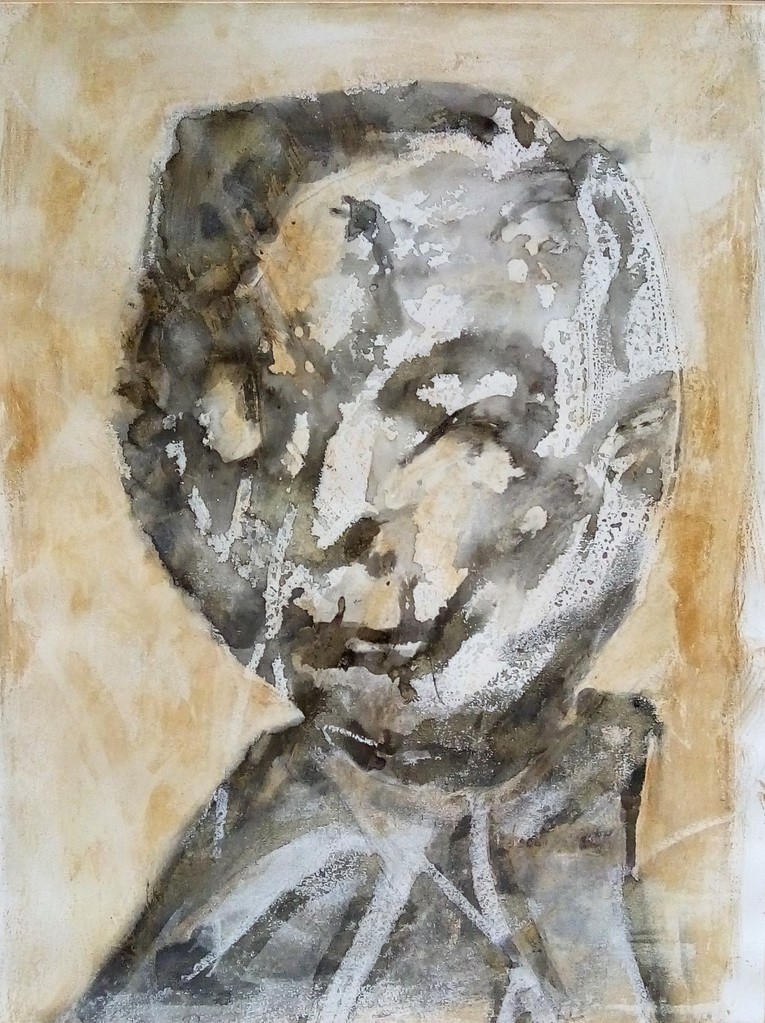 Een oefening in de kunst van Helene. Veel water en inkt, beetje buisman, vette en natte vinger-werk, letterlijk. Een klein jongetje, een oude dame?