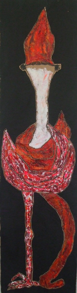Acrylverf op meerdere lagen papier.