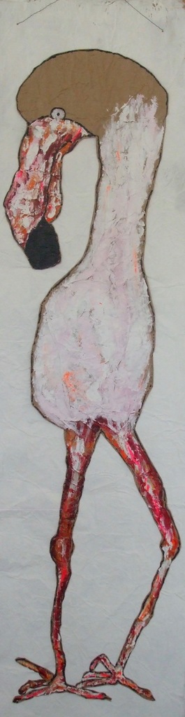 Expressief Bewerkt Papier Acrylverf Flamingo