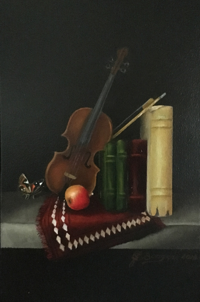 Stilleven: Viool met boeken