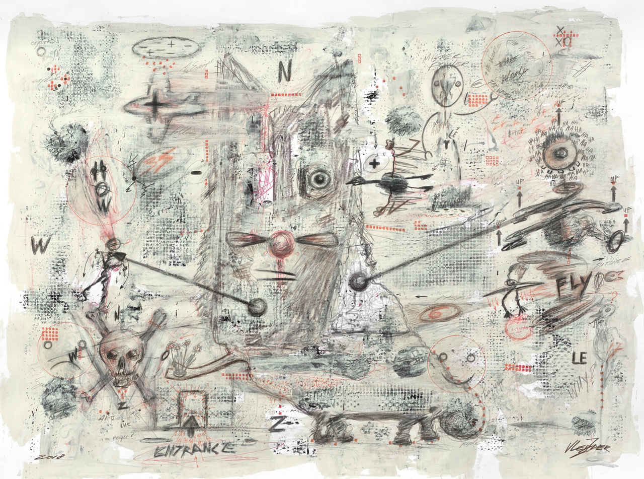 Dit is een soort levensverhaal met alle gebeurtenissen figuratief, abstraherend en geometrisch weergegeven als een soort chaotische plattegrond en de grote vraag is natuurlijk of het uiteindelijk iets gebracht heeft?