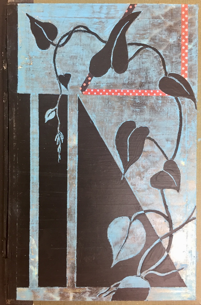 BOEKOMSLAG, oliepastel, geometrie, botanisch, tape