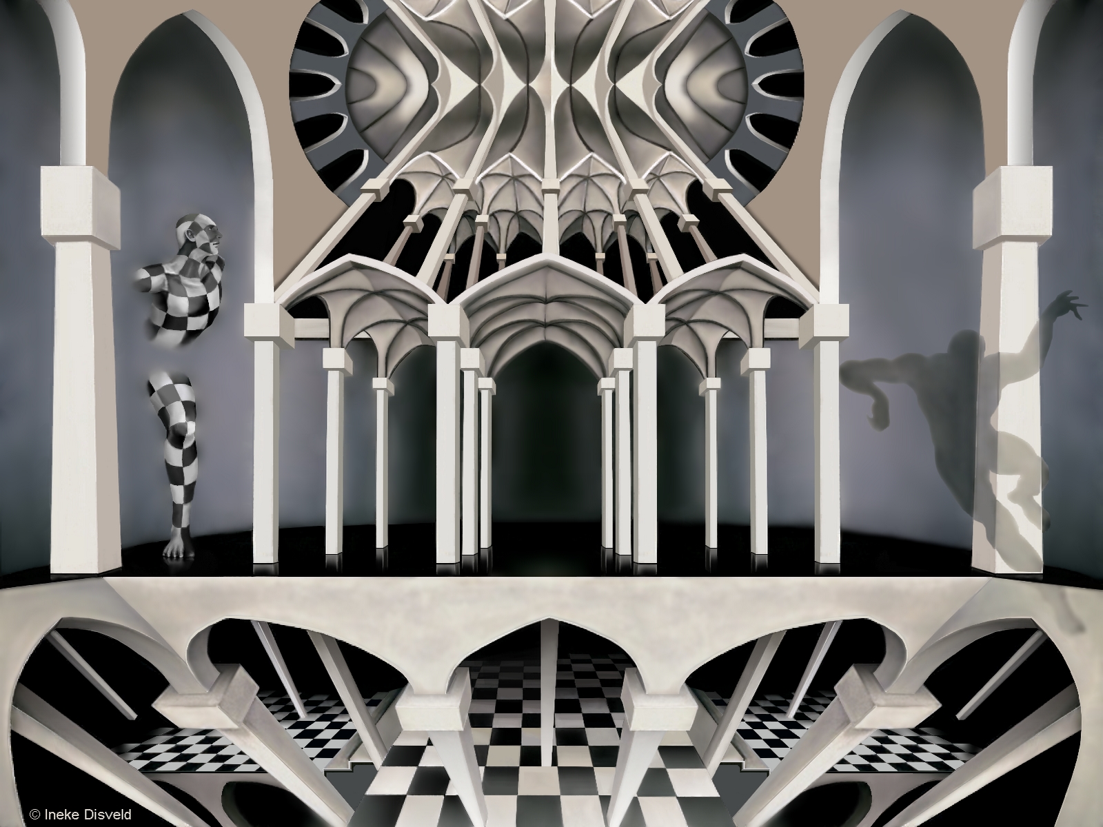 Abstract Art Geometrie Schilderkunst Pastel Exto Pilaren Blok Perspectieven Wiskunde Driedemensionaal Limited Edition Giclee Fine Ineke Delectum Habere Mathematica Opart Disveld Kruisbogen Stereogram