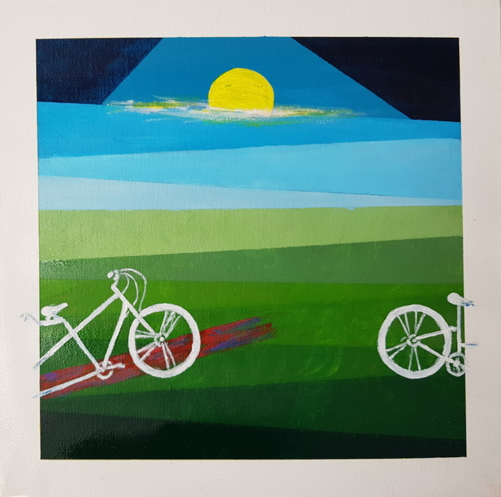 witte fiets in een abstract landschap