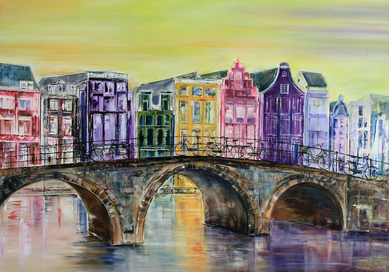 Amsterdam , grachtenhuizen . De kerk erachter heb ik weggelaten