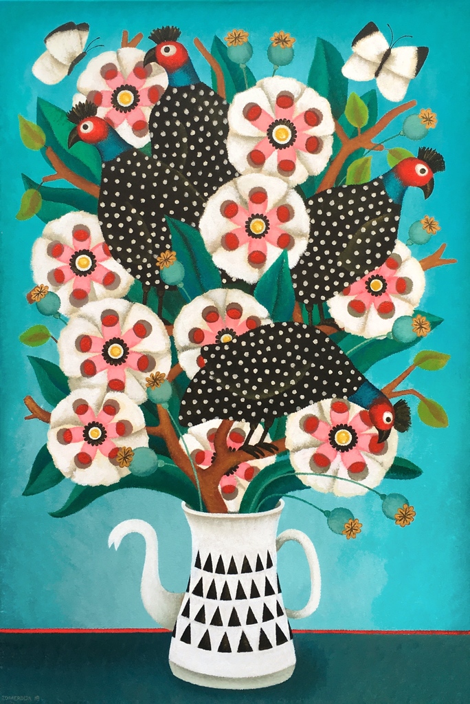 Blauw Bloemen Stilleven Parelhoen Parehoendertjes