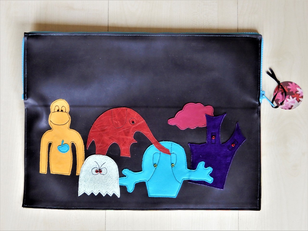 Laptophoes van vijverfolie met leren applicaties, 14 inch