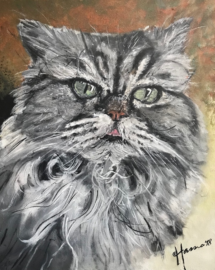 Portret van een Perzische cat, met zijn lange haren en stompe snuit. Deze behoort tot de lastige schilderijen. Vanaf foto.