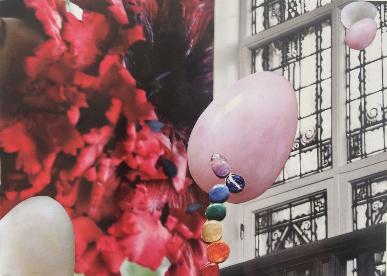 Ik maak papieren collages. Hiervoor gebruik ik tijdschriften, bij voorkeur de meer glossy uitgaven. Ik volg mijn intuïtie en gebruik mijn verstand bij het oplossen van 'problemen' in de verbinding van de papieren onderdelen.
