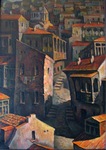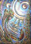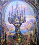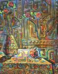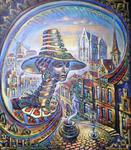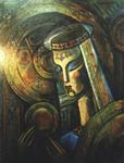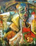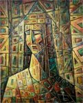 'Deze hardwerkende kunstenaar heeft een hele eigen specifieke timing en creatief proces.Elk nieuw werk is een vervolg op het vorige. Uit zijn eigen creatieve brein ontstaan complexe composities in olieverf.Zijn aparte stijl en techniek zijn uniek.'