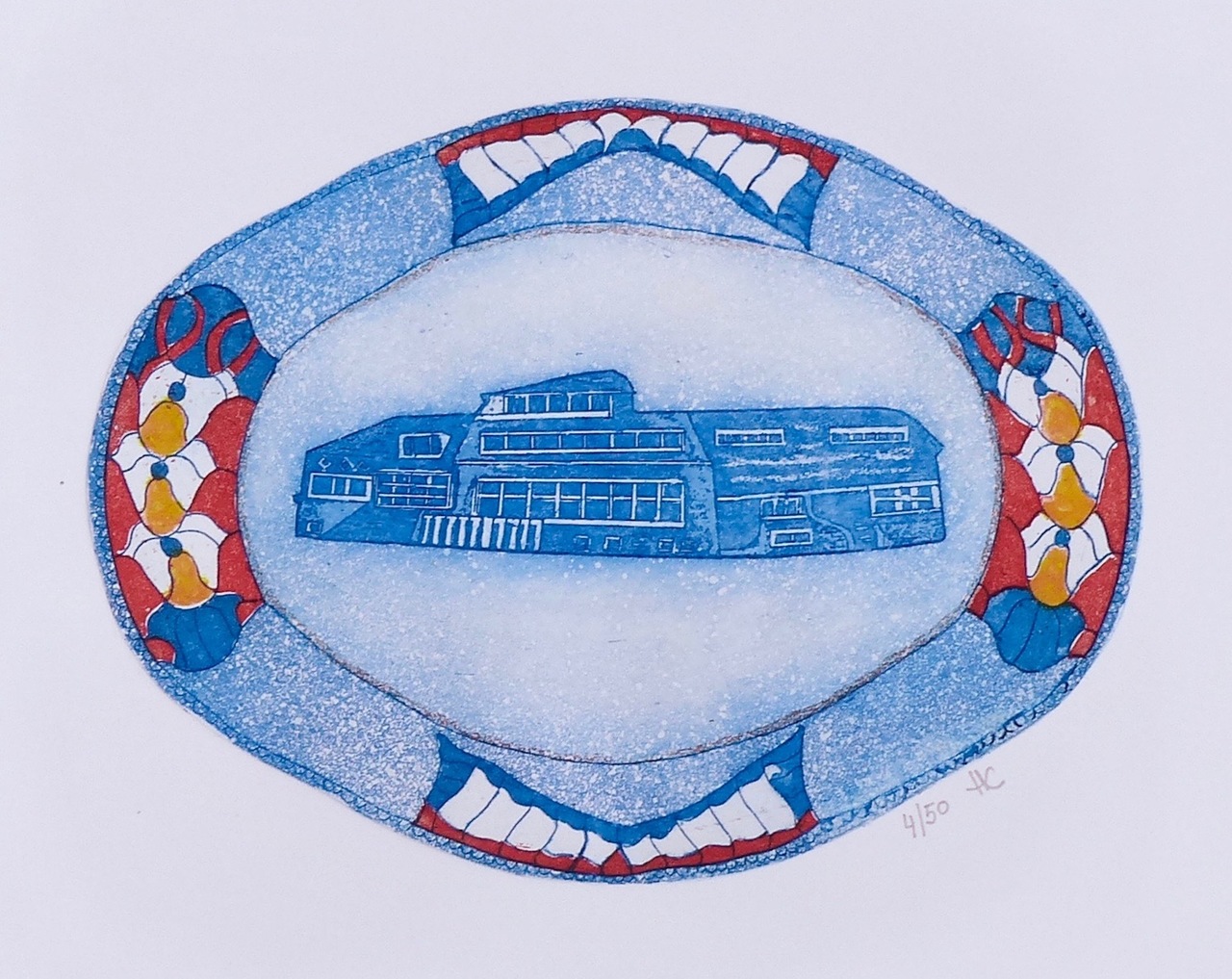 Schip van Blaauw, voormalig laboratorium voor plantenfysiologie van de Wageningen universiteit; de kleuren en vormen van de glas in lood-ramen zijn terug te zien in de gekleurde randen.