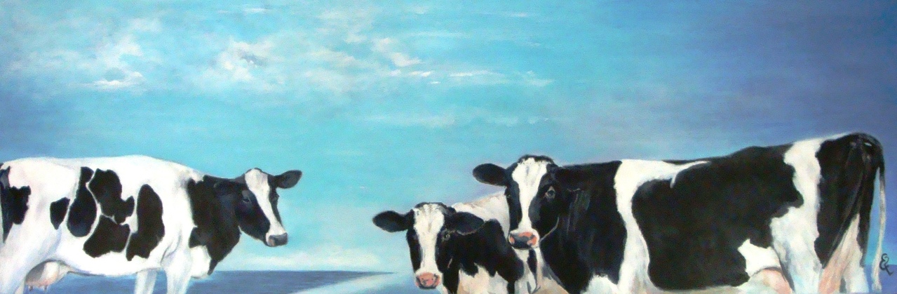 Wit Zwart Blauw Acryl Dier Koe Realistisch