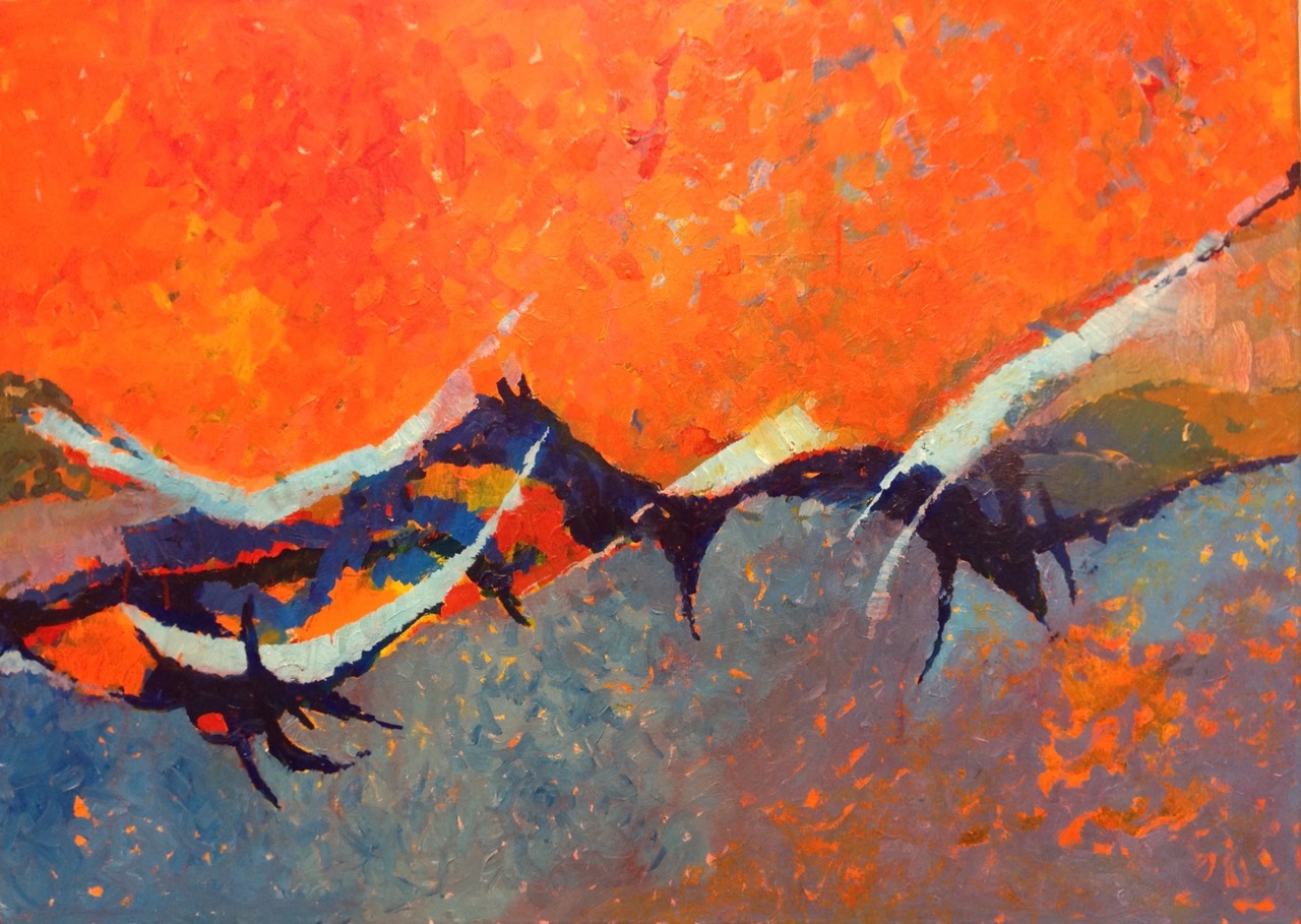Dit schilderij balanceert tussen abstract en figuratief.