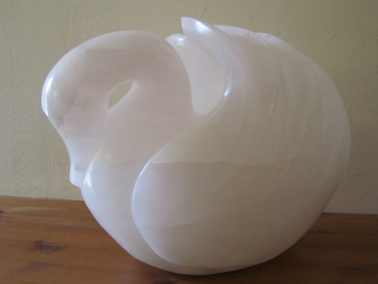 Een zwaan uit wit albast. Geschikt voor binnen.