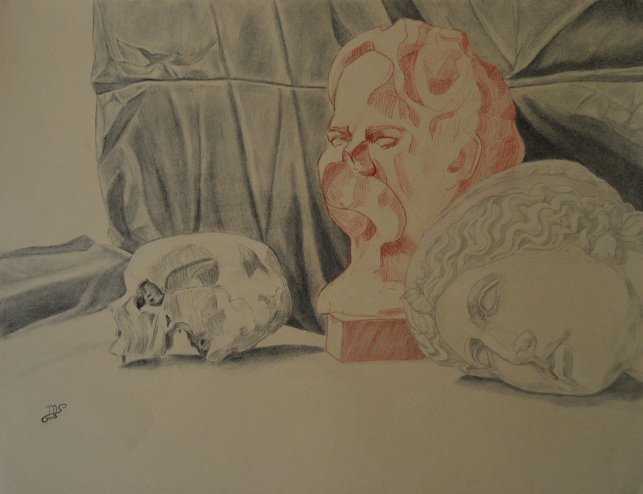 Portrettekenaar en schilder maakt portretten met acrylverf, inkt, houtskool, oil pastels en olieverf