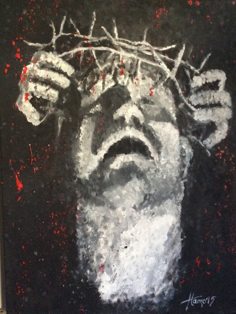 Zelfportret in pixel, met zelf toegebrachtte geestelijke pijn.
