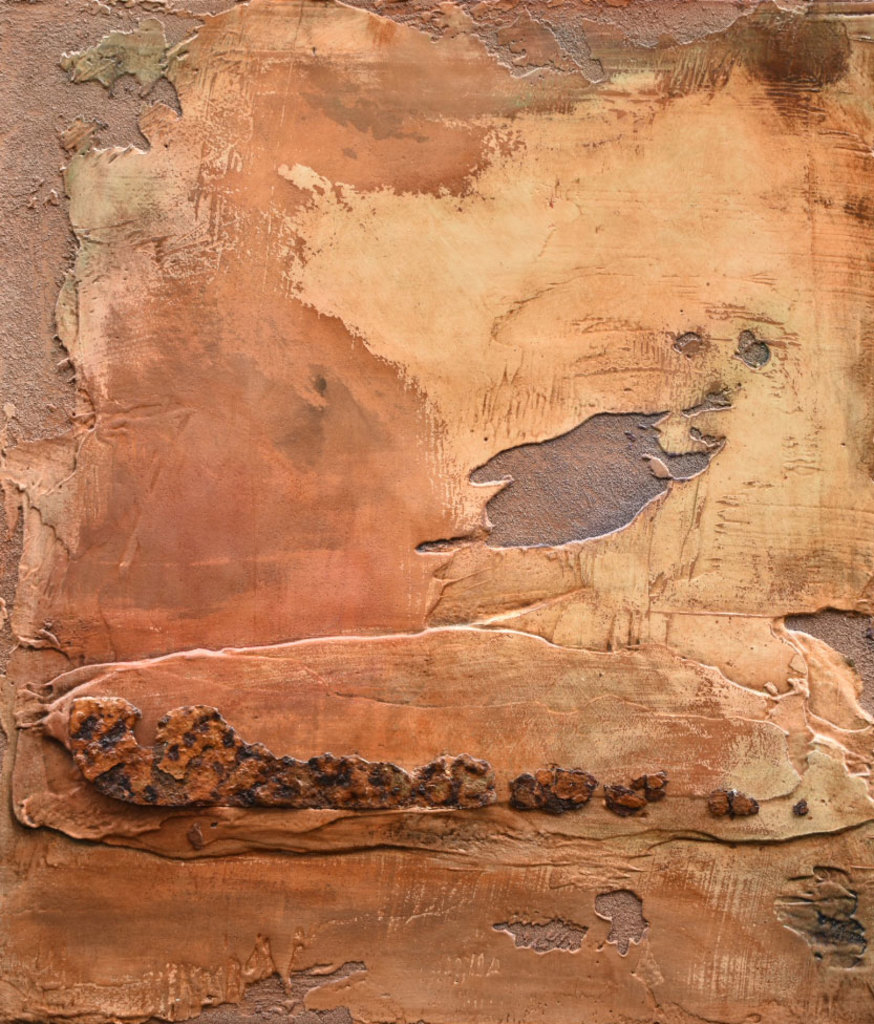 Gevonden metaal.... Gips, zand, acryl, geroest metaal