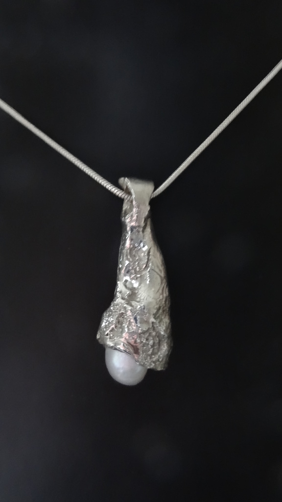 Zilveren hanger + natuurparel ontwerp in gietwas, verloren was methode.